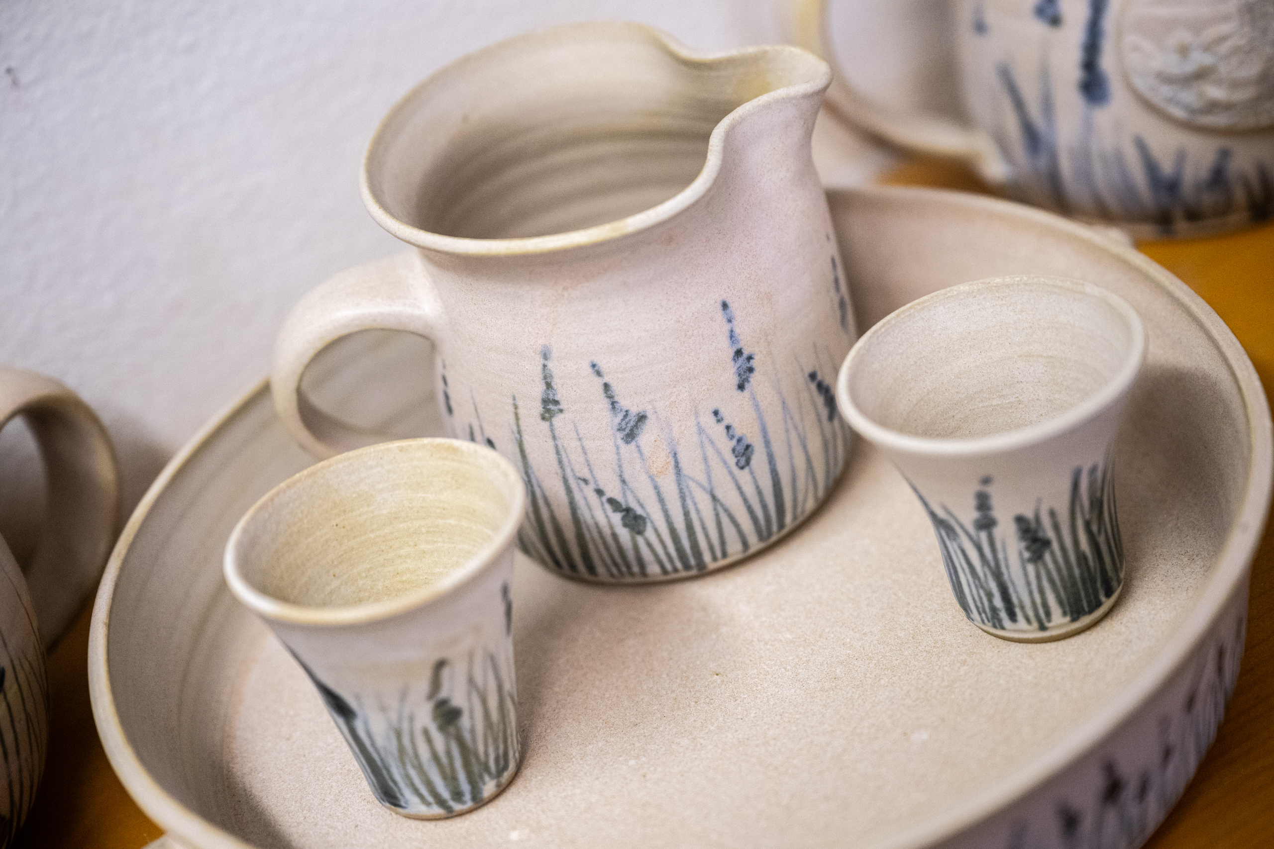 Ve svém ateliéru Michaela vytváří ručně točenou i tvořenou keramiku, která spojuje užitkovou hodnotu s estetickým citem. Sortiment zahrnuje praktické hrnky, talíře a soupravy, ale i dekorativní objekty – od svícnů a koulí na svíčky až po zahradní květináče nebo pítka pro ptáčky.