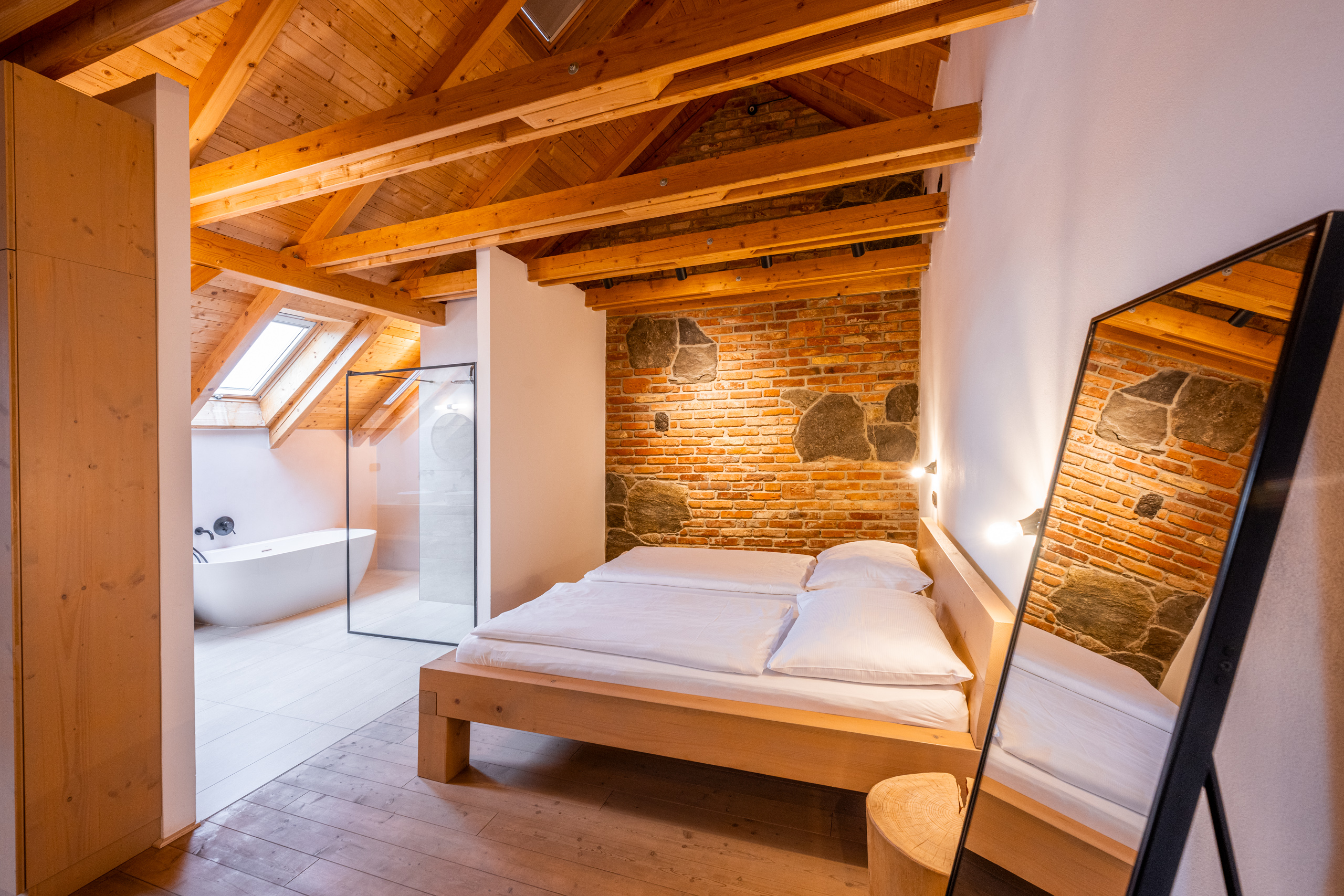 Součástí areálu je rovněž útulný rodinný penzion s kapacitou 11 pokojů doplněných jedním apartmánem, který nabízí komfortní zázemí pro individuální turisty, páry i menší skupiny a představuje ideální základnu pro aktivní dovolenou. Díky své poloze mohou hosté vyrazit přímo odtud na cyklistické i pěší výlety podél řeky Jihlavy – třeba na nedalekou zříceninu hradu Rokštejn.