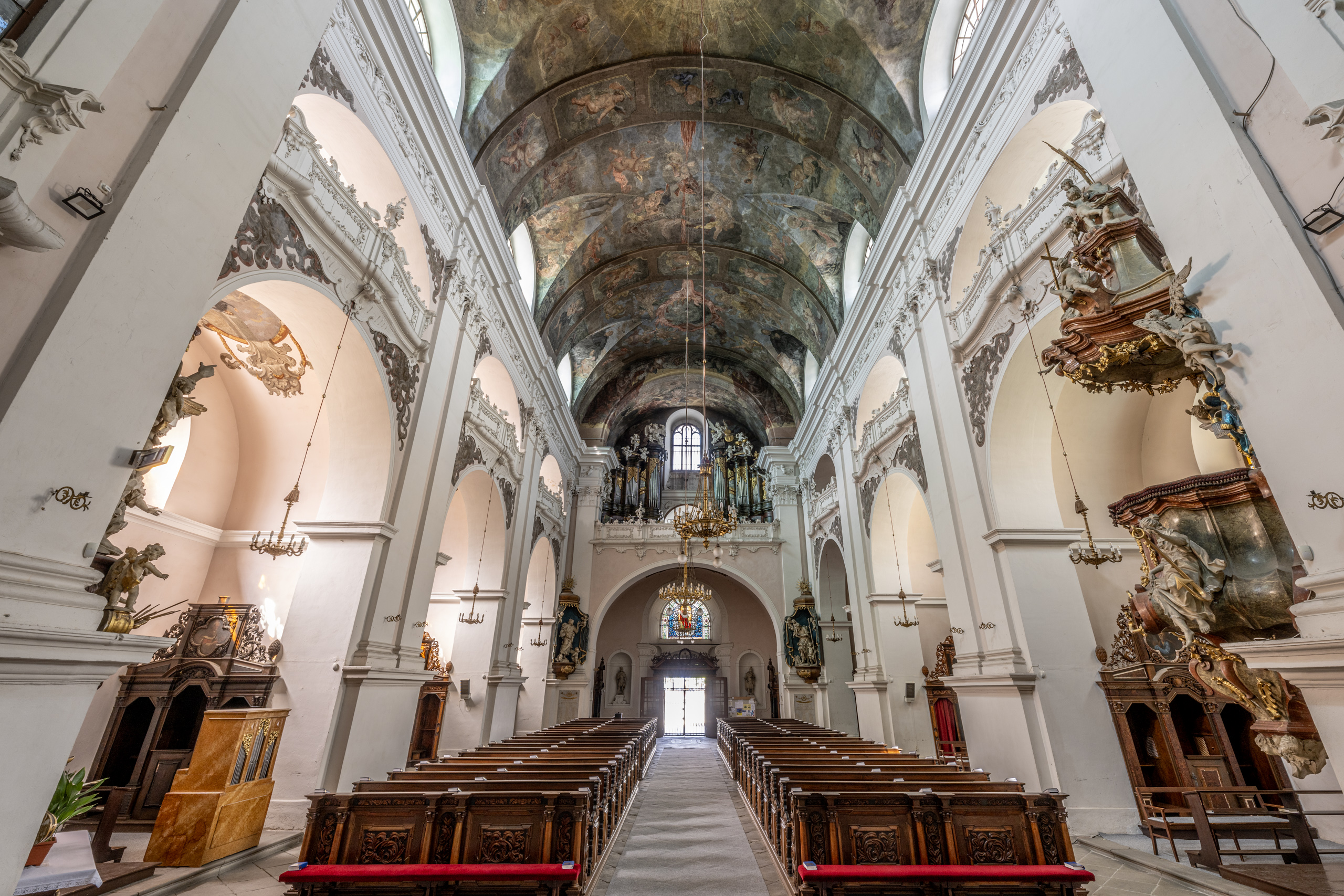 Dominantní barokní stavba, která je součástí někdejšího jezuitského areálu v samotném srdci Jihlavy, zaujme na první pohled svou velkolepostí. V interiéru uchvátí návštěvníky rozměrná nástropní freska Karla Töppera, iluzivní oltář od trojice umělců Adama Lauterera, Josefa Kramolina a Františka Moldingera či bohatá štuková výzdoba. Pýchou kostela je však vzácná gotická plastika Piety z konce 14. století, řazená do okruhu tzv. krásných českých madon.