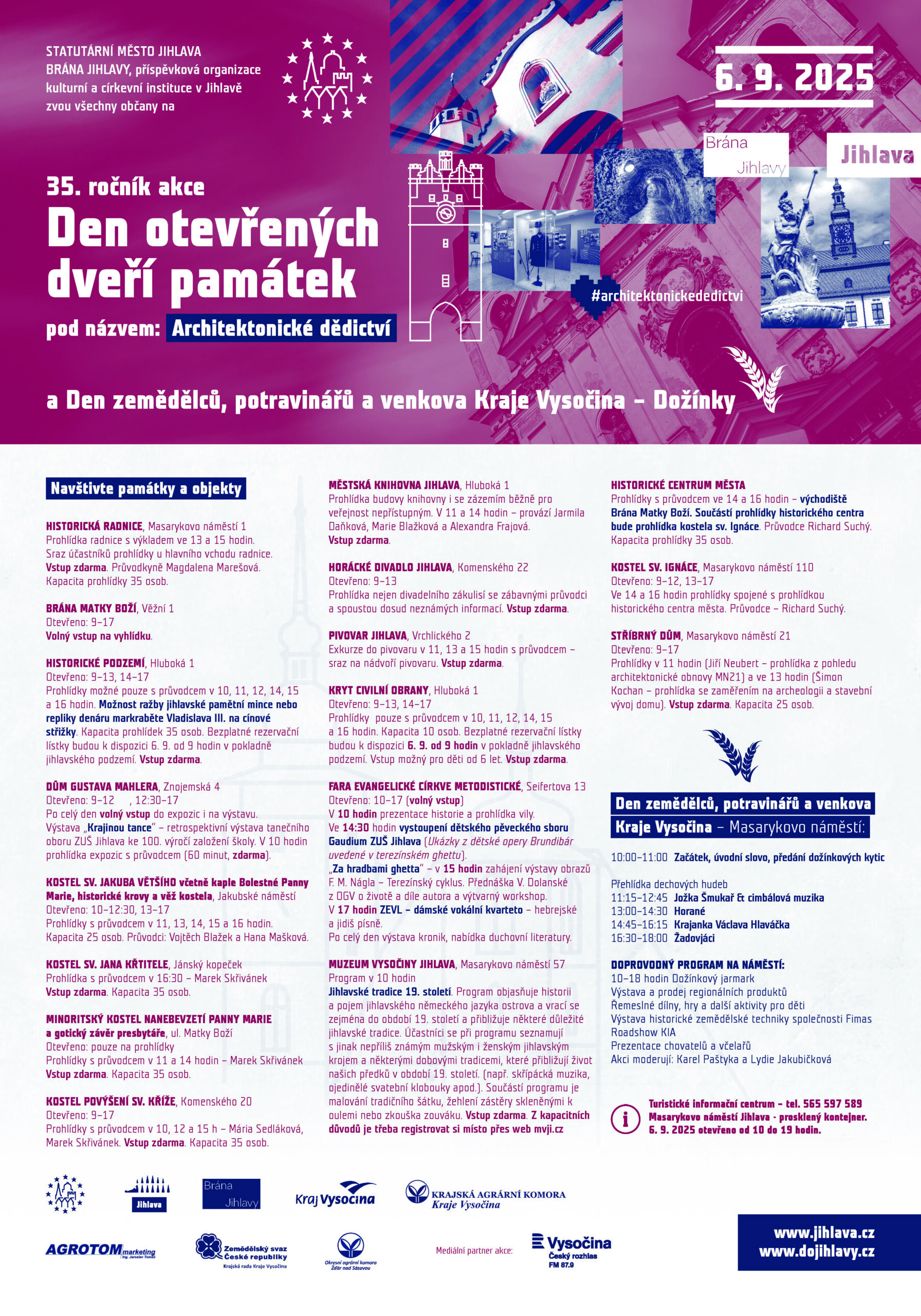 pod názvem: „Architektonické dědictví“. V Jihlavě se vám otevřou mnohé i běžně nepřístupné památky.