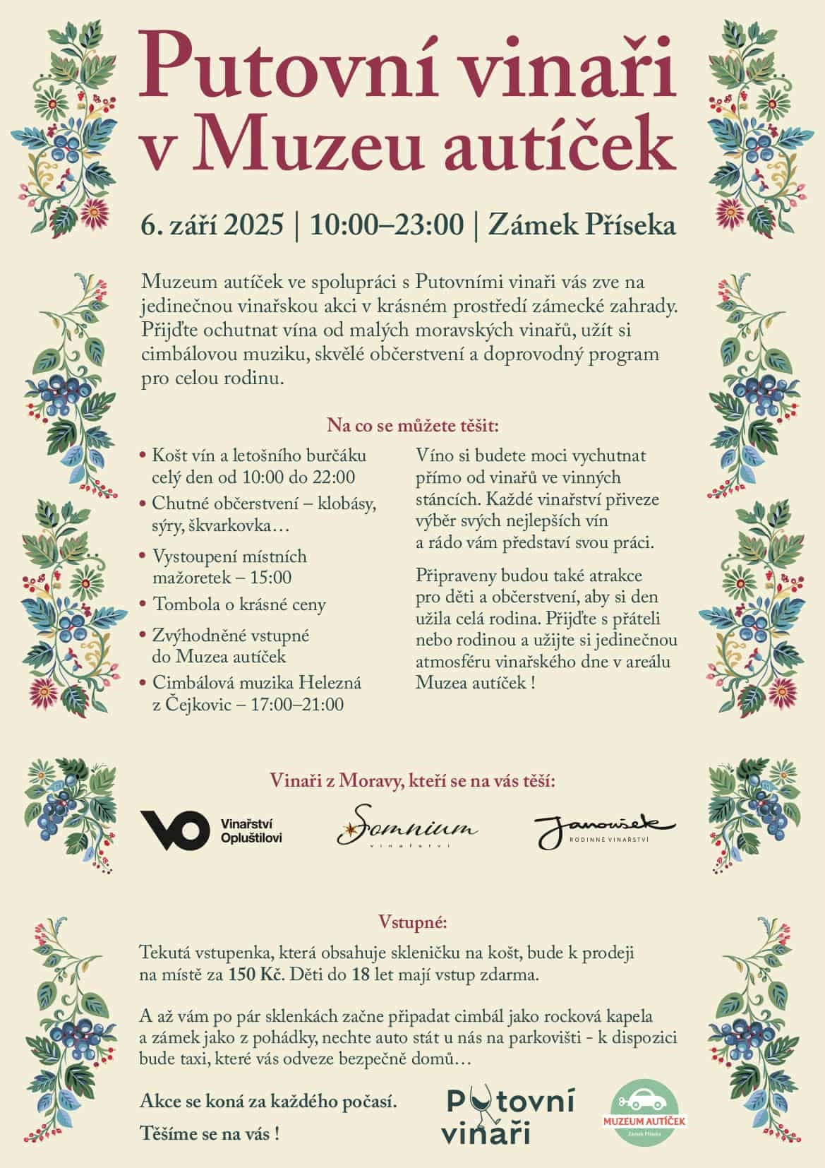 Muzeum autíček PřísekaMuzeum autíček ve spolupráci s Putovními vinaři vás zve na vinařskou akci na zámku v Přísece.
