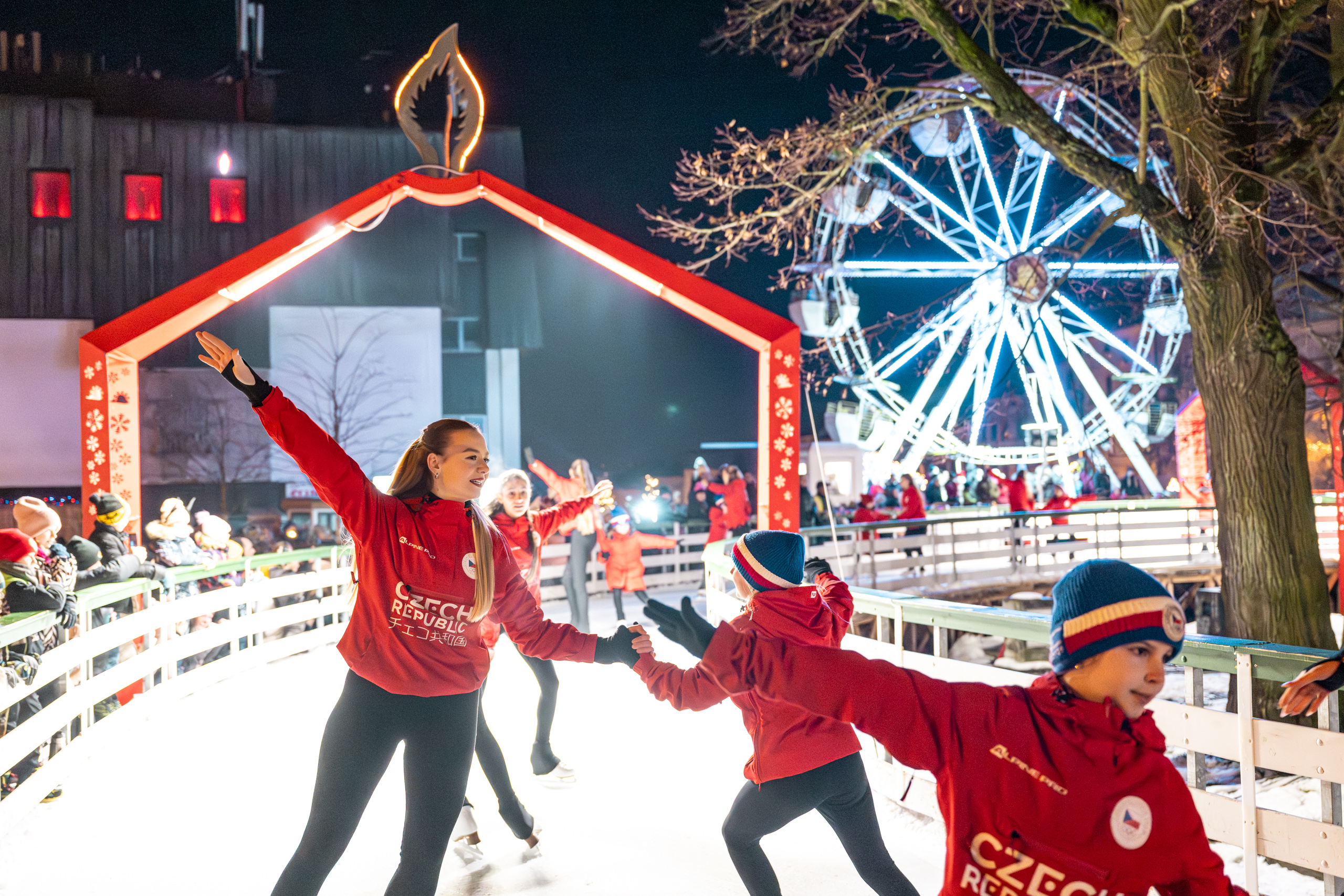 Kruhové kluziště ve tvaru adventního svícnu 30. 11. – 2. 2. 2026 (provozní doba 8 -12, 14 – 21, víkendy 9 – 12, 14 – 21)