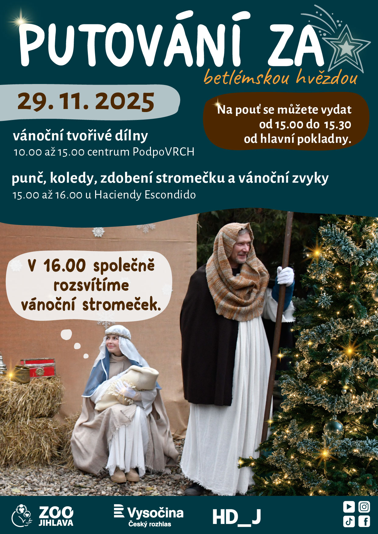 ZOO JihlavaPo roce opět ožije Zoologická zahrada Jihlava vánoční atmosférou. Můžete se těšit na živý betlém, adventní dílny, koledy a slavnostní rozsvícení vánočního stromu.